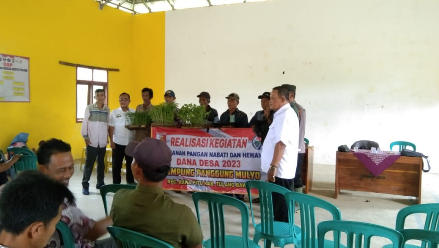 Realisasi kegiatan ketahanan pangan dan hewani kampung panggung mulyo yang disalurkan kepada masyarakat dilaksanakan pada tanggal 10 mei 2023, penyerahan kepada masyarakat kampung dilakukan oleh bapak kepala kampung yang juga dihadiri oleh pak hendri petugas dari kecamatan , babinsa kampung panggung mulyo yaitu bapak jumono, babinkamtibnas panggung mulyo yaitu bapak sucipto, acara berjalan lancar tanpa adanya ribut-ribut.